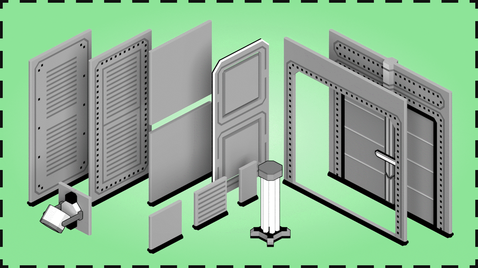 ladders, buttons, cables, lights, doors, pillars and more.