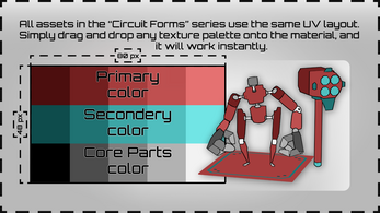 This pack contains texture palettes for all “Circuit Forms” assets.